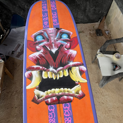 Yakshia is a handcrafted 9’6″ longboard, shaped with power, precision, and presence in mind. Its name is drawn from the legendary demon spirit of Sri Lanka – feared, respected, and never ignored.